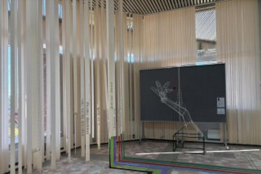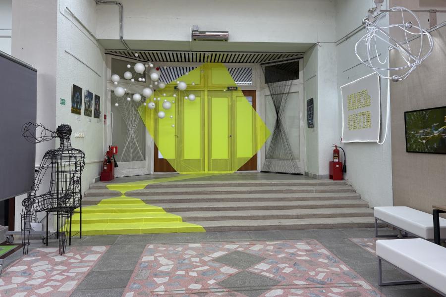 Представьте: вы заходите в зал, где вас встречает робот, рассказывающий о выставке. С потолка свисает пятиметровый путеводитель, в углу зала высится ледник, буквально висит в воздухе – инсталляция, из которой – так и гляди, – польется синий поток. Повсюду световые объекты и удивительные произведения.