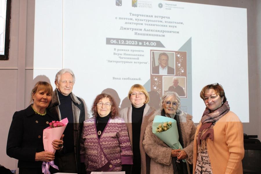 В Киришском историко-краеведческом музее в рамках проекта В.Н.Чиченковой «Литературные встречи» прошёл третий творческий вечер с невероятно талантливыми людьми: поэтом-лириком, профессором, инженером-гидротехником Дмитрием Александровичем Ивашинцовым и его супругой Аллой Анатольевной. Кроме великолепных стихов в авторском исполнении, участники встречи узнали об эпизодах трудной, но интересной жизни Дмитрия Александровича.